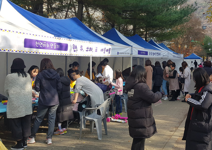 행사는 프로그램 수강생들의 작품 전시와 천연비누, 캘리그라피 책갈피, 드림캐쳐, 에코백 만들기 등의 무료 체험행사, 우리마을 교육나눔 사업에 대한 홍보활동을 진행했다.