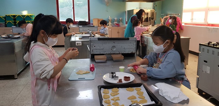 ▲초등학생들이 쿠키만들기 체험을 하고 있다. 창원시 제공 |
