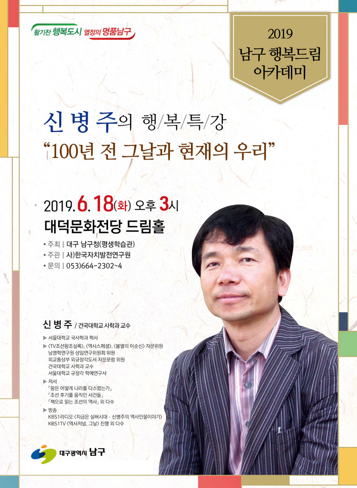 한편 남구 ‘행복드림 아카데미’는 저명인사 초청강연으로 인문·교양·건강·문화·예술 등의 특강으로 이루어지며, 남구의 대표적인 평생교육 프로그램으로 많은 관심과 인기를 끌고 있다.