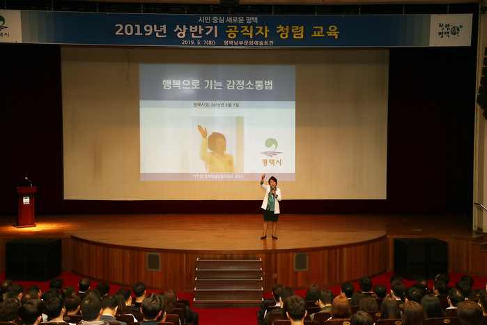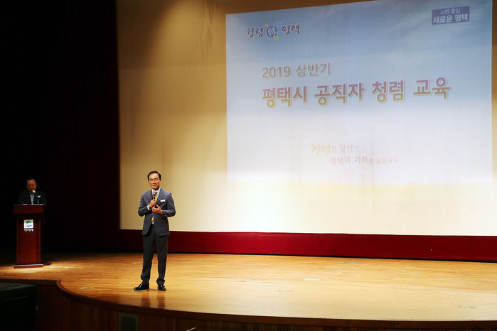 | ▲평택시는 7일 두차례에 걸쳐 남부문화예술회관 대공연장에서 ‘2019년 상반기 공직자 청렴 교육’을 실시했다.(평택시 제공) |