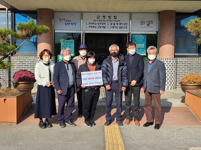 [로컬세계 박상진 기자]경북 의성군 금성면은 지난 10일 하1리 주민일동이 지난 1년간 행복마을 문화사업으로 창출한 수익금 전액을 ‘희망2022나눔캠페인’ 금성면이웃돕기 성금으로 기탁했다고 15일 밝혔다.