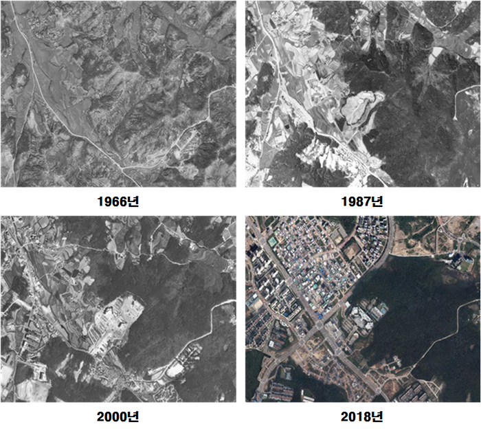 시계열 정사영상 구축사업은 국토지리정보원에서 보관·관리하고 있는 6개 연도(1966년·1977년·1981년·1987년·1995년·2000년)의 아날로그 필름 형태의 항공사진을 항공 삼각측량, 색상 보정 등의 변환 과정을 거쳐 1/5000 크기의 디지털 영상으로 만드는 사업이다.