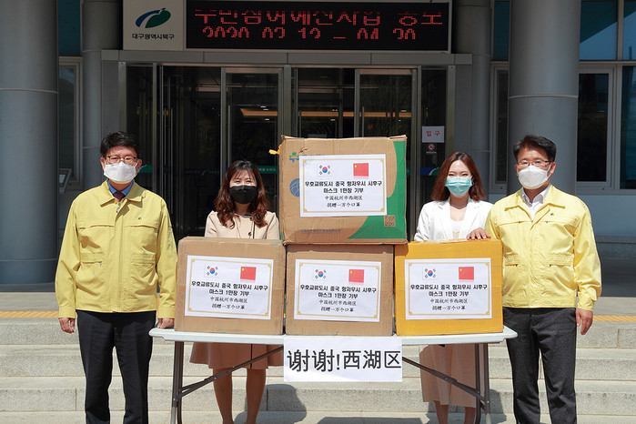 [로컬세계 박세환 기자]대구 북구청의 국외 우호교류도시 중국 항저우시 시후구에서 코로나19 긴급 구호물품인 마스크 1만장과 함께 따뜻한 마음을 보내왔다.