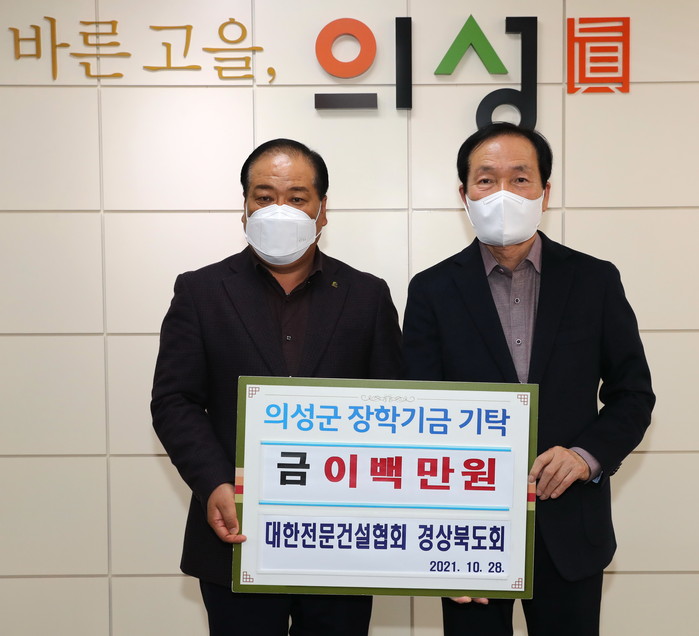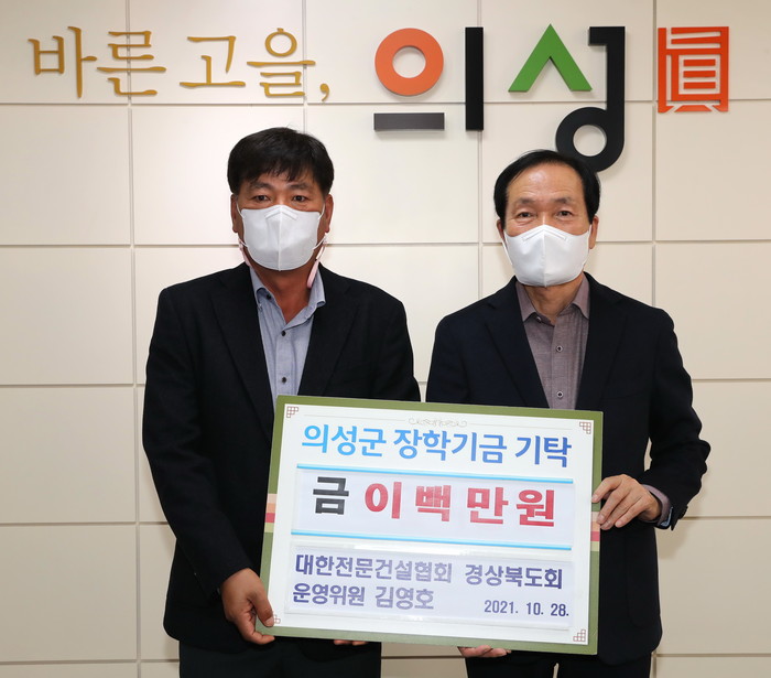[로컬세계 박상진 기자]경북 의성군인재육성재단(이사장 김주수 의성군수)은 지난달 28일 대한전문건설협회 경상북도회와 ㈜삼영건설 김영호 대표가 각각 200만원의 장학금을 기탁했다고 1일 밝혔다.