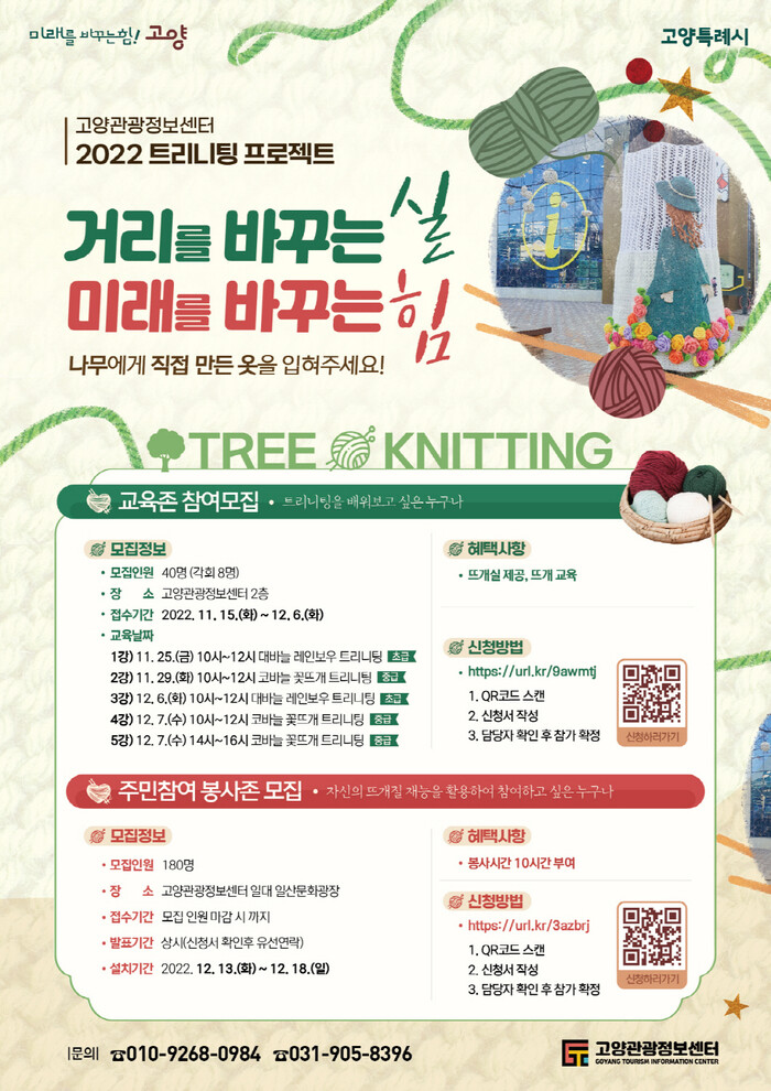 한편, 자신의 뜨개질 재능을 선보이고 싶은 시민은 누구나 트리니팅에 참여할 수 있다. 시는 오는 18일까지 220여 명의 참가자를 모집하고 있다.