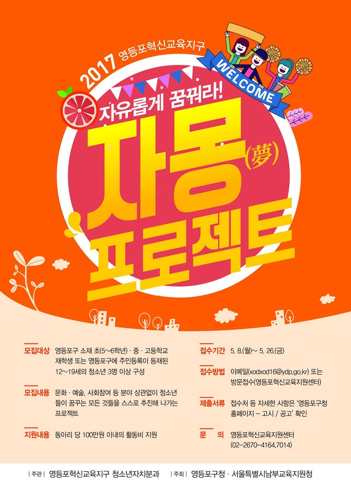 ‘자몽(夢)프로젝트’ 는 ‘자유롭게 꿈(夢)꿔라!’ 라는 뜻을 가진 영등포혁신교육지구의 청소년 자치 동아리 지원 사업이다.