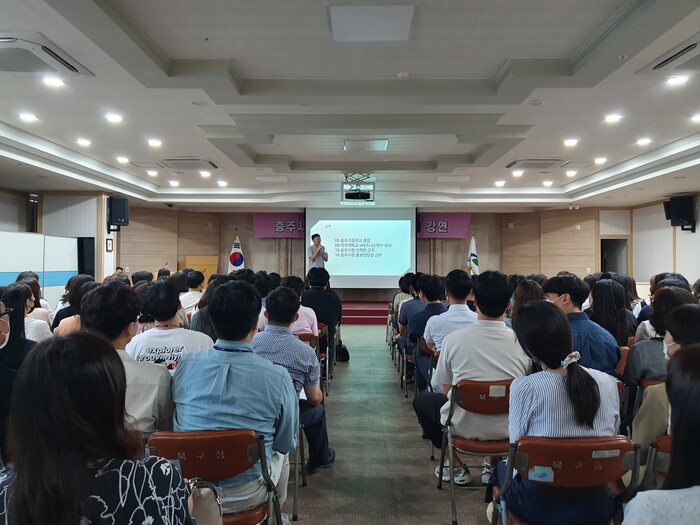 대구 북구청은 직원들의 과감한 도전과 혁신 마인드 함양을 위한 직원 혁신 교육의 일환으로 충주시 유튜브 전문관 김선태 주무관을 초빙해 교육을 개최했다.