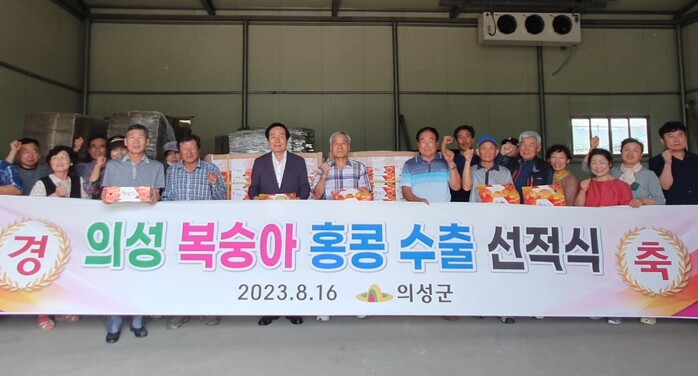 [로컬세계=박상진 기자]경북 의성군은 지난 16일 대자연농업회사법인 수출단지 창고에서 올해 수확한 복숭아 0.7톤을 홍콩에 첫 수출하는 선적식을 개최했다고 17일 밝혔다.