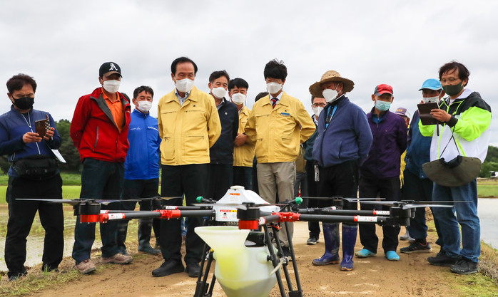 김주수 군수는 "농촌 일손부족 문제를 해결하기 위해 올해 5ha를 시범재배해 작황을 분석하고 드론직파재배 면적을 점차 확대할 계획"이라고 말했다.