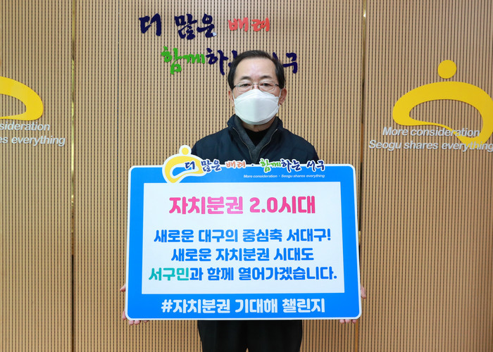 [로컬세계 박세환 기자]류한국 대구 서구청장은 지난 15일 자치분권 2.0시대 개막 응원을 위한 ‘#자치분권 기대해’챌린지에 동참했다고 18일 밝혔다.