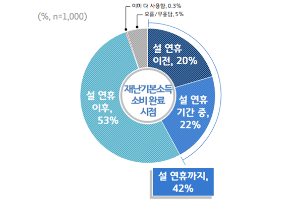사용 시기에 대해서는 응답자 10명 중 4명이 설 연휴 이전(20%)이나 연휴 기간까지(22%) 쓸 계획이라고 답했다.