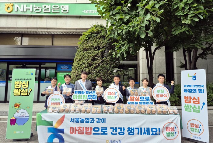 농협 서울본부(본부장 김상수)는 우리 국민의 쌀 소비를 촉진하기 위해 1일 NH농협은행 서울영업부 앞에서 영업점을 방문하는 고객들을 대상으로 ‘굿모닝 쌀모닝‘ 캠페인을 진행했다
