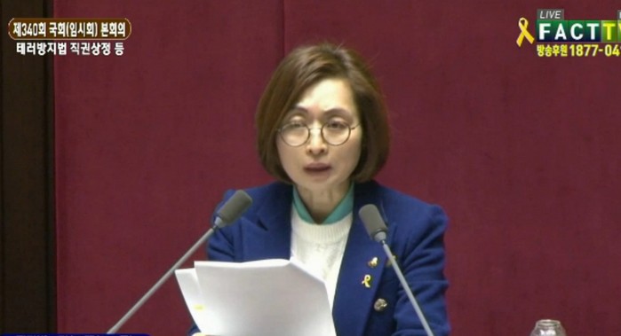 은 의원은 “테러행위를 방지하는 것은 항상 인권문제와 연결되기 때문에 깊이 있는 검토가 필요하다”며 “그럼에도 불구하고 지금 정부여당은 직권상정이라는 그런 조치 통해서 통과시키려하고 있다”고 지적했다.