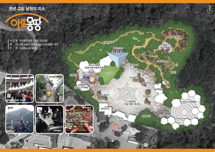 남원랜드 민간개발사업은 2021년까지 순수 민간자본 55억원을 투입하여 남원랜드 부지에 미니꽃동산, 숲속놀이터, 숲체험관, 동물체험관, 어린이 놀이시설, 다목적 캠핑장, 유아용 짚라인, VR체험관 등 5개 공간으로 구성하여 육아맘들의 가장 큰 고민이었던 아이들을 위한 다양한 체험형 공간을 조성하는 사업이다.