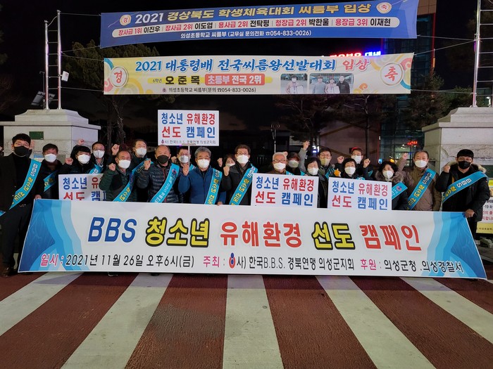 [로컬세계 박상진 기자]경북 의성군은 한국BBS경북연맹의성군지회와 함께 수능 이후 청소년 일탈을 예방하고 각종 유해환경으로부터 보호하고자 지난달 26일 의성읍 내 업소 및 학교주변에서 청소년 유해환경 개선을 위한 거리캠페인을 실시했다고 7일 밝혔다.