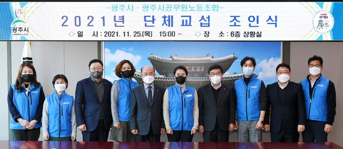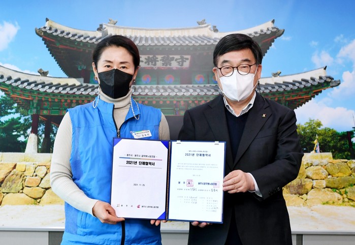 이번 협약은 2019년 단체협약 체결 이후 새롭게 이뤄진 것으로 광주시 공무원 노조의 단체교섭 요구에 따라 노사 상견례 이후 2차례에 걸친 실무교섭을 통해 교섭요구안 4건(근무조건 개선 2건, 후생복지 2건) 중 원안수용 1건, 수정수용 3건으로 최종 합의했다.