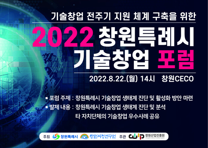 [로컬세계=한용대 기자]경남 창원특례시는 오는 22일 오후 2시부터 창원컨벤션센터에서 기술창업 전주기 지원체계 구축을 위해 기술창업 생태계 진단과 활성화 방안을 마련하고자 ‘제1회 창원특례시 기술창업 포럼’을 개최한다고 12일 밝혔다.