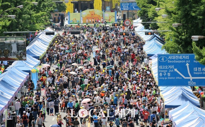 ▲어린이날을 맞아 대전 원도심 중잉로에서 차 없는 거리가 펼쳐지고 있다. 오영균 기자 |