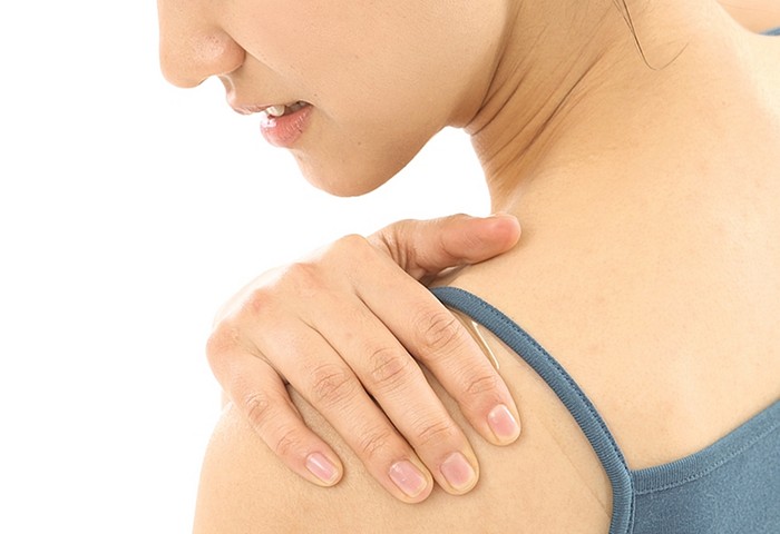 ▲한 여성이 어깨 통증을 호소하고 있다. <사진 제공=자생한방병원> |