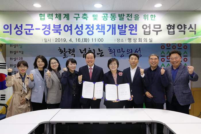 | ▲의성군은 경북여성정책개발원과 지난 16일 시청에서 저출생 및 지방소멸 위기 극복을 위한 지역 맞춤형 양성평등정책 발굴과 공동사업 추진을 위한 업무협약을 체결했다.(의성군 제공) |