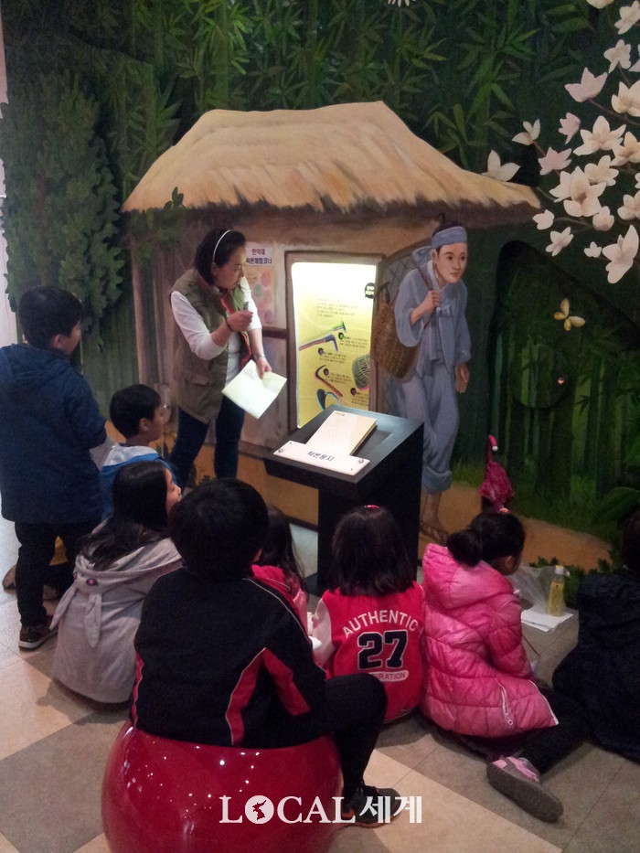 ▲ 지난 3월 서울시 동대문구가 지원한 명소탐방 프로그램에 참여한 동답초 4학년 학생들이 서울약령시한의약박물관에서 탁본뜨기체험에 앞서 설명을 듣고 있다. © 로컬세계 |