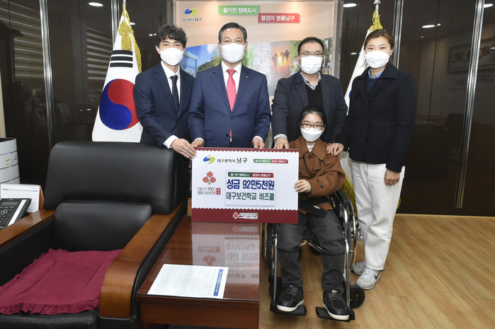 이날 전달된 성금은 대구 사회복지공동모금회를 통해 생활이 어려운 남구 저소득 세대 등에 전달될 예정이다.