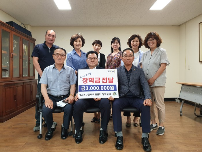 이날 행사는 주민자치위원회 장학분과위원들을 중심으로 마련됐으며, 전달식에는 소남영 주민자치위원장, 김기상 장학분과장이 참석해 학생들에게 장학금을 전달하고 격려하며 함께 축하하는 뜻깊은 시간을 가졌다.