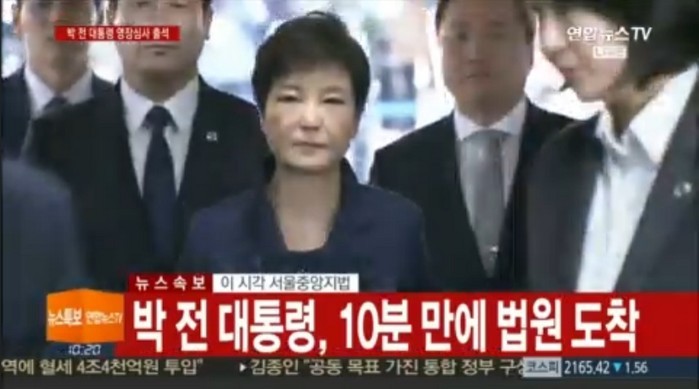 ▲박근혜 전 대통령이 2017년 3월 30일 영장실질심사를 위해 서울중앙지방법원에 들어서고 있다. 사진은 연합뉴스TV 화면 캡쳐. |