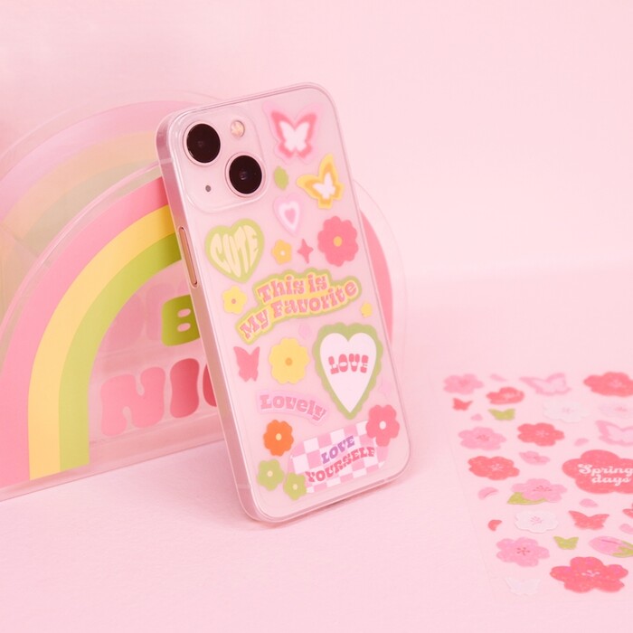 먼저, 하이틴 감성을 자극하는 상품으로 다양하게 구성했다. ‘핸드폰 꾸미기 세트’는 꽃 무늬와 나비 등 여러 가지 스티커를 조합해 나만의 감성을 입힌 폰케이스를 완성할 수 있고, ‘봄봄 스마트폰 비즈 스트랩’은 레트로한 컬러감이 느껴지는 비즈를 엮어 만든 끈으로 손목에 걸어 액세서리 같은 느낌을 연출할 수 있다. 다꾸(‘다이어리 꾸미기’의 준말)와 ‘폴꾸(폴라로이드 꾸미기’의 준말)에 봄을 담을 수 있는 ‘떼어쓰는 벚꽃 마테’와 ‘봄봄 에폭시 스티커’도 판매한다.