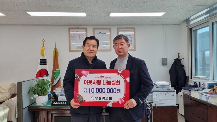 ▲ 성광교회가 어려운 이웃을 위해 1000만원을 기탁했다. 의성군 제공 |