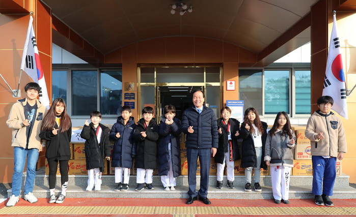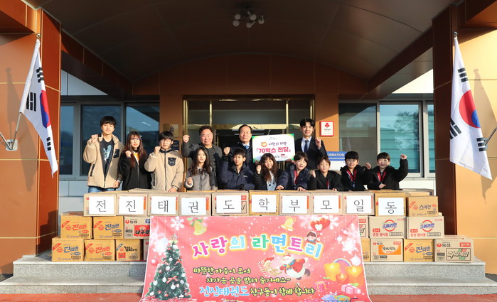 의성 전진태권도에서 기탁한 라면 73박스는 이번에 처음으로 학생들과 학부모가 십시일반 돈을 모아 마련했으며, 관내 어려운 독거노인과 아이들에게 전달된다.