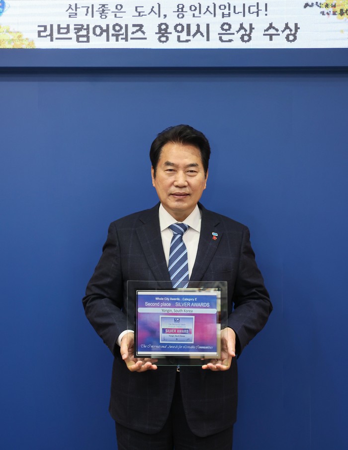 용인시가 8일 UN산하 UN환경계획(UNEP)이 공인하는 국제대회, 리브컴 어워즈(LivCom Awards)에서‘살기좋은 도시상(Whole city Award)’부문 은상을 수상했다고 9일 밝혔다.