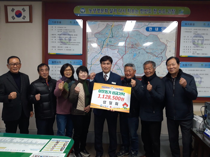 전북 고창군 고창읍 봉사단체인 삼일회가 7일 고창읍행정복지센터를 찾아 이웃돕기 성금 112만8500원을 기탁했다.