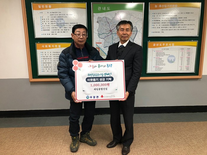 제일종합건설(대표 김문경)은 지난 7일 오전 무장면행정복지센터를 방문해 연초 소외된 이웃을 위해 사용해 달라며 성금 100만원을 기탁했다.
