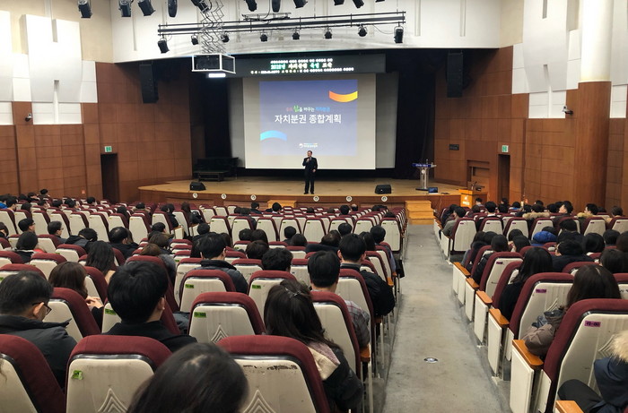 교육에는 430여 명의 공무원들이 참석한 가운데 자치분권위원회 부위원장 김순은 교수가 나서 자치분권 종합계획을 중심으로 지방자치분권시대 지방공무원의 역할을 설명했다.