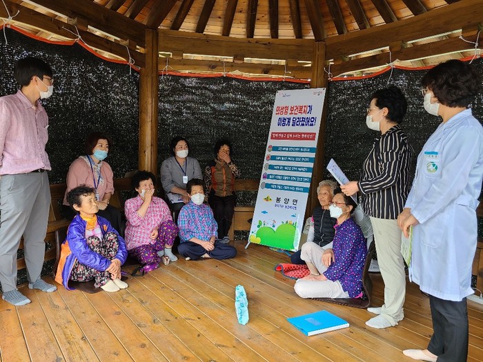 이날 시행한 경로당 홍보에는 봉양면 찾아가는 보건복지팀과 보건직 공무원이 함께해 각종 복지상담 뿐만 아니라, 건강체크·건강상담, 만성질환 예방관리 교육 등을 하고 찾아가는 보건복지 홍보 안내문과 홍보물품 배부 등으로 경로당 어르신들의 호응을 얻고 있다.