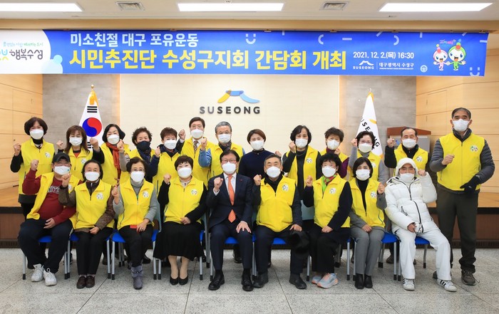 또한, 미소친절 수성구 만들기에 앞장서 긍정적인 도시 이미지를 만드는 데 이바지한 시민추진단 단원들을 격려했다.