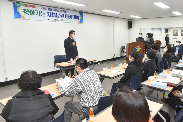 [로컬세계 박세환 기자]대구 남구는 자치분권 2.0 시대를 맞아 마을 주민들의 자치역량 강화를 위해 '찾아가는 자치분권 아카데미'를 개최한다고 15일 밝혔다.
