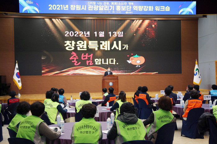 [로컬세계 권인진 기자]경남 창원시는 30일 오전 10시 시민홀에서 창원시 관광알리기 홍보단을 대상으로 홍보 역량 강화를 위한 워크숍을 개최했다. 허성무 시장, 조진희 관광알리기 홍보단 회장을 비롯한 홍보단원 등이 참석했다.