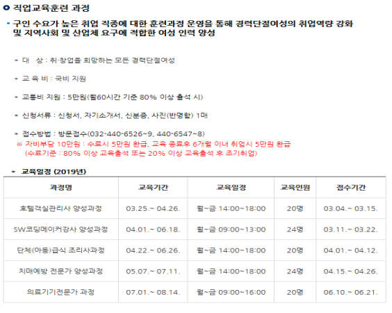 새일센터운영위원회 회의에 참석한 중부지방노동청 인천고용센터, 인천연구원, 인천테크노파크 일자리취업본부 일자리센터 운영위원들은 여성의 경제활동 참여를 위해 여성인력 적극 채용, 경력단절여성 취업지원 방안모색, 올해 직업교육훈련 개설과정 등 주요사업 및 새일센터 운영에 대한 토론과 전문가적 의견을 제시했다.
