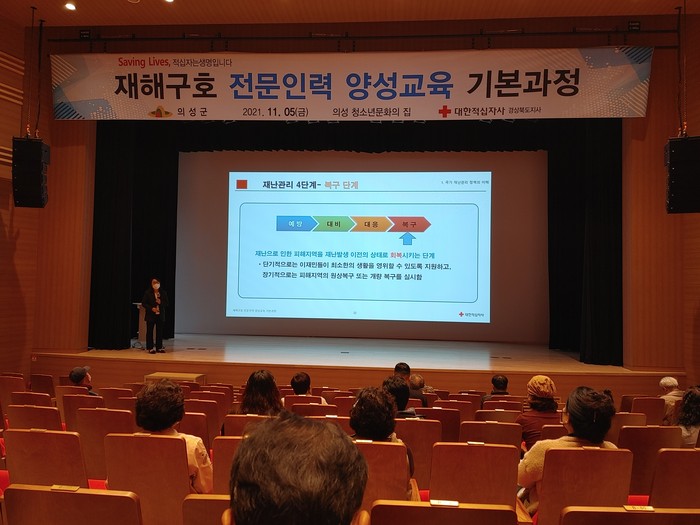 의성군 청소년 문화의집 대강당에서 열린 이번 교육은 ‘국가재난관리체계’, ‘재난대응체계’, ‘이재민구호’ 등의 순으로 진행됐다.