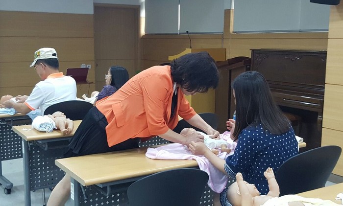 교육은 총 4회차로 ▲부모됨의 의미와 역할, 포대기 육아법 ▲진통의 효과적 대응법과 호흡, 통증 경감 체조 및 간단한 산전 요가 자세 배우기 ▲올바른 모유수유방법과 아기모형을 이용한 아기 안는 자세 배우기 ▲신생아와 애착을 형성하기 위해 우는 아기 달래기, 신생아 목욕시키기 등 아기모형을 이용한 신생아 돌보기 실습 및 산후관리방법 등 임신부터 육아를 모두 아우르는 내용으로 구성됐다.