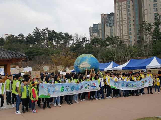 아울러 지구를 위한 작은 실천으로 ‘손피켓 만들기’, 미세먼지 4행시짓기, OX퀴즈, 자전거 발전기를 이용한 재생에너지 체험, 미세먼지 줄이는 청소법 소개 등이 진행됐다. 이밖에 소감 발표, 지구 들고 사진 촬영 등도 열렸다.