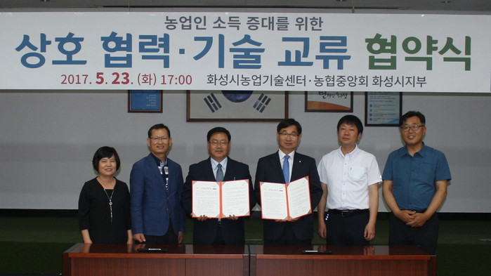[로컬세계 주덕신 기자]경기도 화성시 농업기술센터와 농협중앙회 화성시지부가 지난 23일 농업기술센터 3층 강의실에서 ‘상호협력 . 기술교류 협약’을 체결했다.