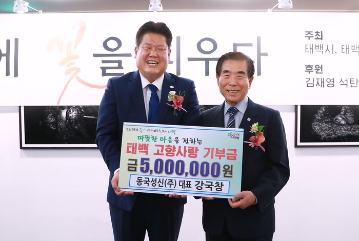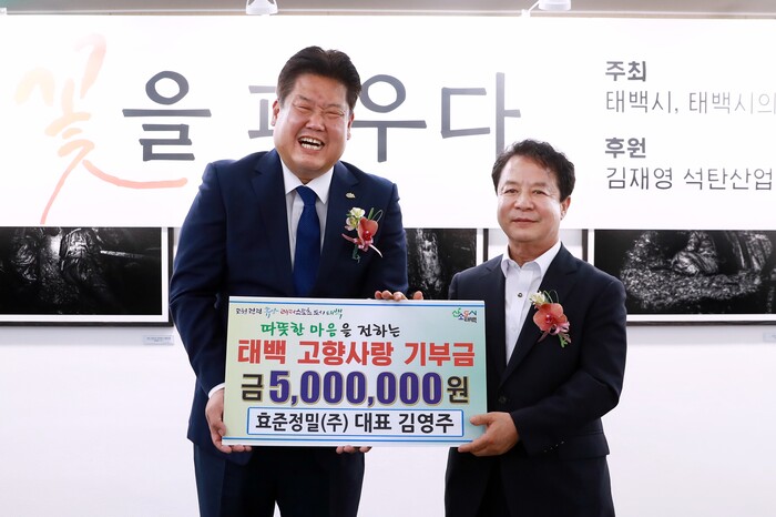 [로컬세계=박상진 기자]강원 태백시는 지난 22일 재경태백시민회, ㈜효준정밀, 동국성신(주)가 서울에서 개최된 ‘검은황금 사진전시회’에서 고향사랑기부금 최고 금액인 500만원씩 총 1500만 원을 기탁했다고 27일 밝혔다.