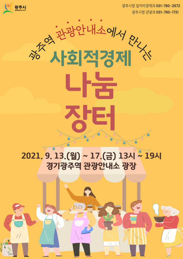 [로컬세계 김병민 기자]경기 광주시는 추석을 맞아 사회적경제기업 나눔 장터를 오는 13일부터 17일까지 5일간 경기광주역 관광안내소에서 개최한다고 9일 밝혔다.