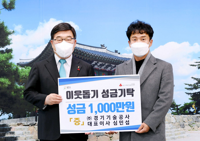 ㈜경기기술공사 심민섭 대표는 지난 14일 광주시청을 방문해 성금 1000만원을 기탁했다. 심 대표는 “광주시에서 기업을 하는 사람으로서 광주시의 이웃들에게 도움이 되고 싶다”며 기탁동기를 밝혔다.
