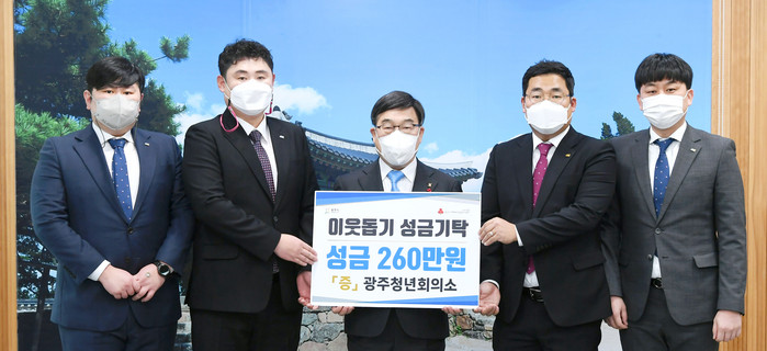 같은 날 광주청년회의소 김용원 회장도 성금 260만원을 기탁하며 “2022년 새로 취임을 하면서 지역사회에 도움이 되기 위해 성금을 기탁하게 됐다”며 “임인년 새해는 희망이 가득한 해가 됐으면 한다”고 기탁소감을 전했다.