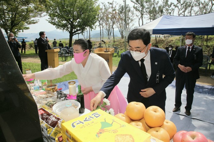이날 추모제에는 유봉용 태풍매미추모장학사업회장, 김수권 태풍매미유족회장, 허성무 창원시장을 비롯한 유족들과 시민 등 30여 명이 참석했다.