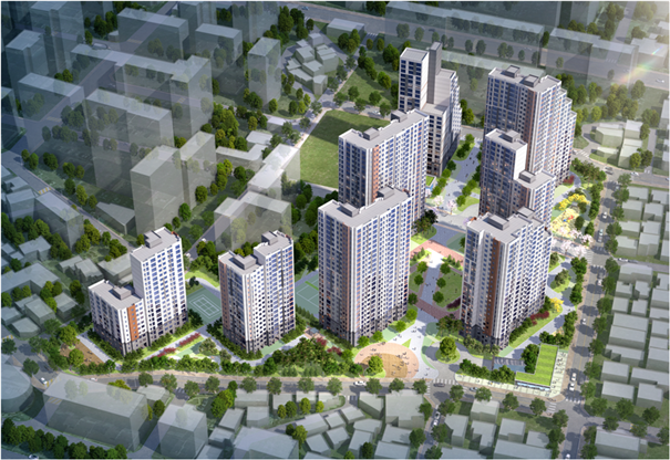 정비계획 44,658.5㎡부지에 법정상한용적률 246.64%이하, 최고 25층 이하, 아파트 8개동으로 총 917세대가 건립되며 주변지역에 필요한 시설로 공영지하주차장, 어린이집, 공공청사 등을 공공기여하는 내용으로 결정했다.